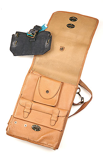 A TAN LEATHER MAP-CASE AND A PATTERN '37 OFFICER'S WEBBING AMMUNITION POUCH, the first possibly Swedish army issue, the second blacked for Tank Corps use