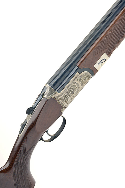 CASTELLANI 12-BORE SINGLE-TRIGGER OVER AND UNDER EJECTOR, serial no. 07007, 27 1/2in. nitro barrels, 2 3/4in. chambers, multichokes (no spares), floral and scroll engraving, 14 1/4in. pistolgrip stock