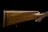 22 1/4in. nitro barrel engraved 'B. LAUBSCHER & ASSOC. RIFLEMAKERS', the knoxform gold-inlaid with the calibre designation, open sights and ramp-mounted bead fore-sight with folding protector, the receiver (with thumb cutout) mounted with a Schmidt & Bender 3-12x42 telescopic sight, serial no. 257490, floral engraved recoil blocks, hinged floorplate with push button release, pistolgrip stock with cheekpiece, steel pistolgrip-cap, sling swivels, 14 3/8in. pull including 73/4in. rubber recoil pad, weight 9lb., in its full length brass-cornered oak and leather case with padded cloth outer cover