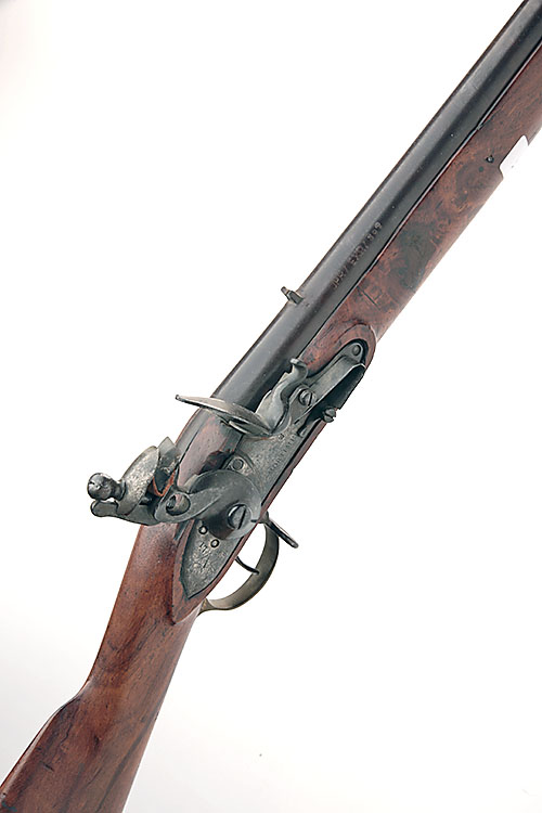 A .650 FLINTLOCK COLONIAL MUSKET SIGNED MORTIMER, MODEL BAKER STYLE, serial no. JPR/EXR/397,
