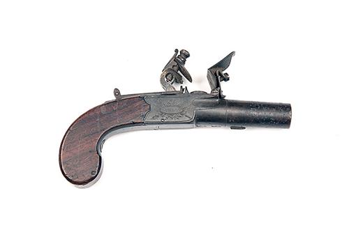 A 32-BORE FLINTLOCK BOXLOCK POCKET-PISTOL SIGNED NICHOLSON, LONDON, no visible serial number,