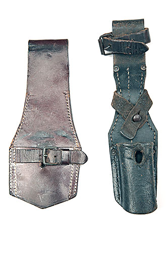 TWO LEATHER BAYONET FROGS, the first being a WW2 Mauser K98K type, the second possibly a British '03 Pattern (2)