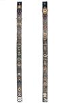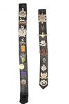 FOUR LEATHER BELTS OF MOSTLY GENUINE MILITARY CAP-BADGES AND MEDALS,