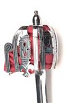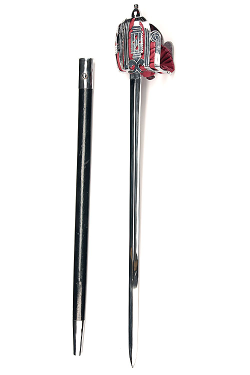 A REPRODUCTION SCOTTISH BASKET-HILTED BROADSWORD, recent, with 33in. double-edged blade, chrome-plated basket, leather grip and red felt lining, complete with its black leather scabbard
