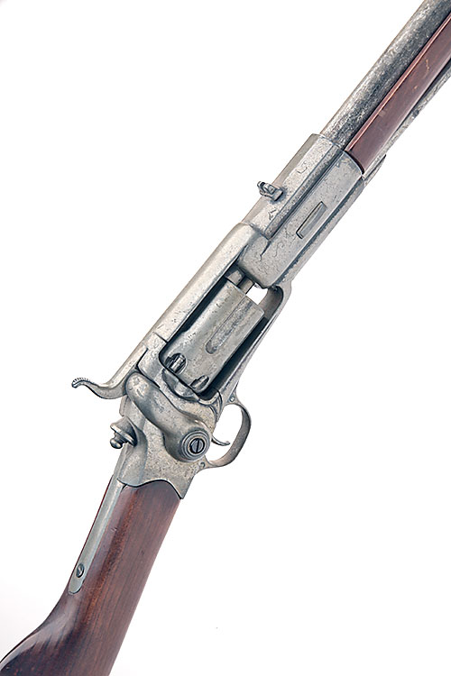 A REPRODUCTION DIECAST METAL IMITATION COLT REVOLVING RIFLE, 43 1/2in. overall with wood stock and fore-end, display only