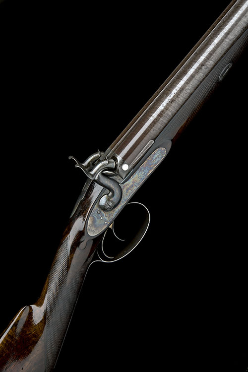 A CASED 12-BORE PERCUSSION DOUBLE-BARRELLED SPORTING-GUN , serial no. 257,