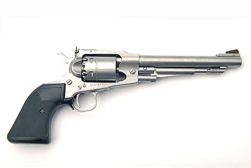REPRODUCTION .45 PERCUSSION REVOLVER, SIGNED STURM RUGER, MODEL OLD ARMY, IN STAINLESS STEEL, serial no. 145-87737 - SS with a 7 1/2 in, round barrel, adjustable rear sight and blade foresight, plain cylinder and pachmayr grips.