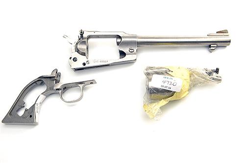 THE MAJOR PARTS OF A REPRODUCTION .45 PERCUSSION REVOLVER, SIGNED STURM RUGER, MODEL OLD ARMY, serial no. 145-88114 - SS comprising of a stainless steel barrelled frame, bare grip and trigger guard, cylinder and other components, some parts missing, grips not present.