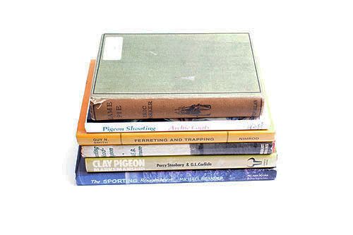 A COLLECTION OF 6 SHOOTING RELATED BOOKS, comprising of 'THE SPORTING ROUGHSHOOT' by Michael Brander, 'CLAY PIGEON MARKSMANSHIP', 'SHOOTING WOOD-PIGEON' by A.E.B. Johnson, 'FERRETING AND TRAPPING FOR AMATEUR GAME KEEPING', 'PIGEON SHOOTING' by Archie Coats, 'GAME PIE' by Eric Parker