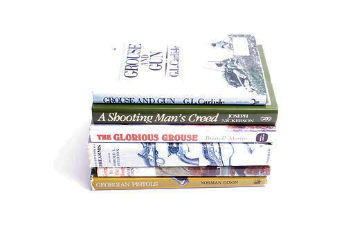 A COLLECTION SIX SHOOTING RELATED BOOKS, comprising of 'GROUSE AND GUN', 'A SHOOTING MAN'S CREED' by Joseph Nickerson, 'THE GLORIOUS GROSS' by Brian p. Martin, 'ENCYLOPEDIA OF FIREARMS' 'GOING TO THE MOORES GEORGIAN PISTOLS' by Norman Dixon