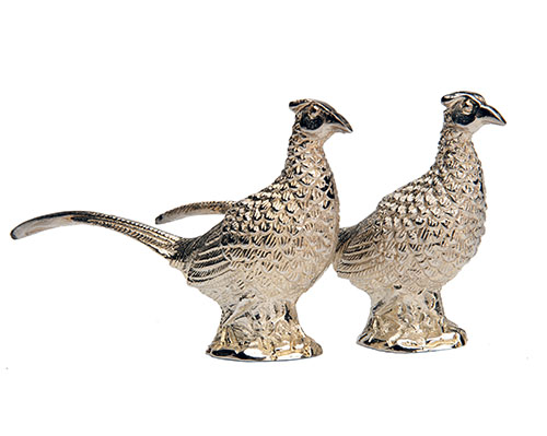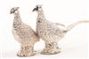 A BRACE OF SILVER PLATE SALT AND PEPPER SHAKERS IN THE FORM OF COCK PHEASANTS