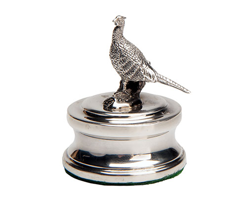 A .925 SILVER PAPERWEIGHT IN THE FORM OF A PHEASANT,