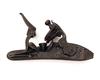AN ISOLATED LEFT-HAND COMPLETE LOCK MECHANISM FROM FLINTLOCK GUN serial no. 6769,