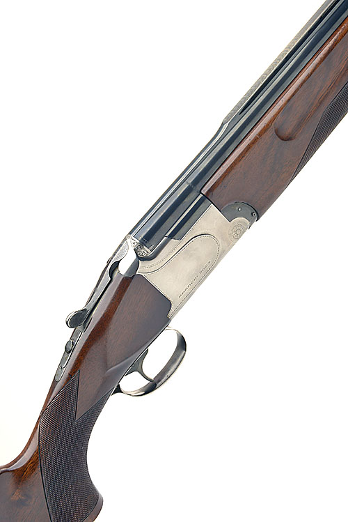 FRANCHI 12-BORE SINGLE-TRIGGER OVER AND UNDER EJECTOR, serial no. 5012537, 28in. nitro barrels with 10mm ventilated matt top-rib, 2 3/4in. chambers, bored approx. true cyl. in both, hold-open toplever, manual safety, rolled-edge triggerguard, border engraving, brushed finish, 14 1/2in. pistolgrip stock including buttplate, weight 7lb 15oz.