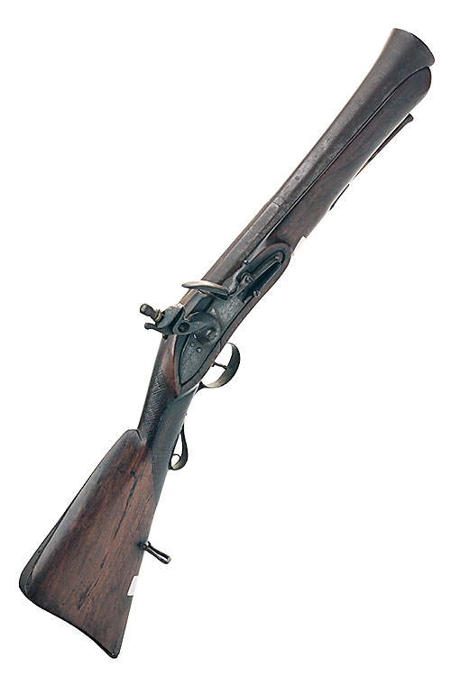 A 12-BORE FLINTLOCK BLUNDERBUSS WITH IRON BARREL AND EAST INDIA CO. LOCK, no visible serial number,