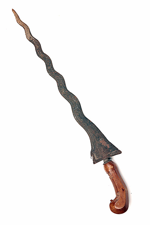 A MALAY KRIS KNIFE late 19th century, with wavy15 1/2in. blade, carved 'Garuda' hilt, no scabbard