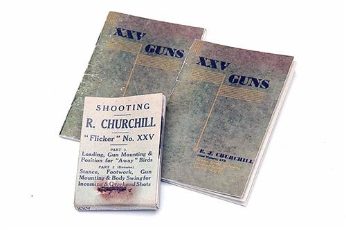 CHURCHILL 'FLICKER' BOOK No. XXV, titled 'SHOOTING - Part 1. Loading, Gun Mounting & Position for 'Away' Birds, Part 2. Stance, Footwork, Gun Mounting & Body Swing For Incoming & Overhead Shots' TOGETHER with two small Churchill booklets