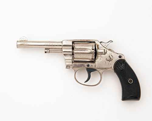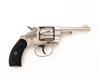 for 1901, with round, nickel-plated 3 1/2in. barrel signed on three lines, crescent fore-sight, sighting groove to the top-strap, fluted swing-out six-shot cylinder, solid frame, the sideplate marked with the Colt trademark surrounded by the wording 'COLT'S NEW POCKET', blued hammer with brushed bright sides, blued trigger, chequered black hard rubber grips, retaining the majority of its original nickel plated finish