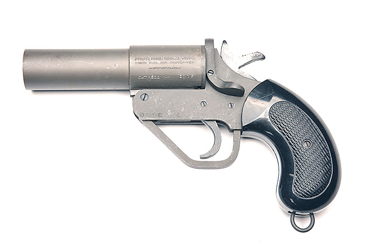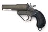 A 1in (FLARE) SIGNAL PISTOL SIGNED UBERTI, MODEL 'COSTON-VERY', serial no. 2016, with parkerised 5 1/4in. barrel, parkerised iron frame and chequered plastic grips