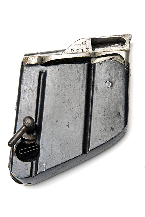 Other Notes: The patent for the Hiscock-Parker Magazine was granted on November the 7th., 1913. Approvals for military service were issued on December 1917 as the "Magazine, .22" Rifle, Mk.I This example is maked to rifle serial No G9013 and has a well defined Enfield inspectors mark.