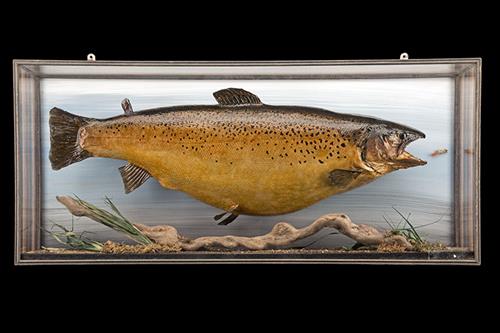 the specimen weighing approx. 19Ibs. 2oz. mounted on board with glazed front and sides, measuring approx. 36in. x 17in. x 7in.