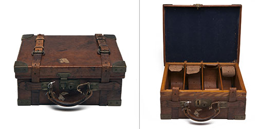 approx. 200 cartridges, three removable dividers, four leather lifters, brass lock (including key),