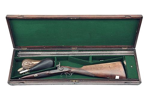 A CASED 15-BORE PERCUSSION SPORTING-GUN SIGNED EDWARD WHITEHOUSE, MELTON MOWBRAY, serial no. 1408,