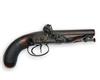 A 16-BORE FLINTLOCK DOUBLE-BARRELLED SASH-PISTOL SIGNED MONCK, no visible serial number,