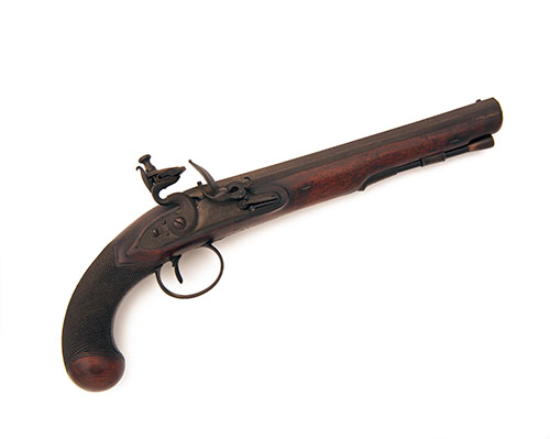AN 18-BORE FLINTLOCK DUELLING PISTOL, no visible serial number,