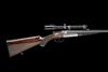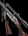 27in. Greener trademark steel nitro reproved barrels (converted from .303 calibre, London proof 1984), broad file-cut rib with open sights and two folding leaf sights, white metal inlaid sight lines and marked for 100, 200 and 300 yards, ramped bead fore-sight with high visibility bead, the breech end engraved 'W.W. GREENER. 68 HAYMARKET LONDON. WROUGHT STEEL', and mounted with a Zeiss Diavari-C 1,5...4,5x18 telescopic sight, serial no. 65207, in quickly-detachable mounts, A&D treble-grip action with removable striker discs, manual side-safety with gold-inlaid 'SAFE' detail, border engraving, retaining some renewed colour-hardening and finish, 15in figured pistolgrip stock with steel pistolgrip-cap, sling swivels and including 1in. rubber recoil pad, weight 8lb. 12oz. (unscoped) and 9lb. 13oz. (with scope)