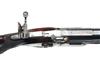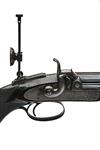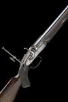 circa 1865, with heavy round 36in. barrel, the top signed 'GEORGE GIBBS, 29, CORN STREET BRISTOL' the short sighting rib at breech marked 'METFORD'S PATENT 123', bead at muzzle to locate ball-guide (included), block mounted windage adjustable tunnel fore-sight, no provision for rear-sight on barrel, squared breech-block, plain top-tang with integral mount for adjustable vernier diopter tang-sight (included), platinum plug, plain bar-action lock signed 'GEORGE GIBBS', plain hammer, chequered walnut pistol-grip half-stock with chequered iron heel-plate, gadrooned horn grip-cap, plain iron trigger-guard bow with finely chequered trigger-blade, single barrel-key with double-screwed escutcheons and rounded horn fore-end tip, no provision for ramrod isolated patches of shallow pitting at breech and lockplate