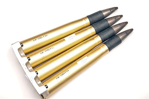 A CLIP OF FOUR 40mm INERT ROUNDS FOR THE BOFORS GUN,