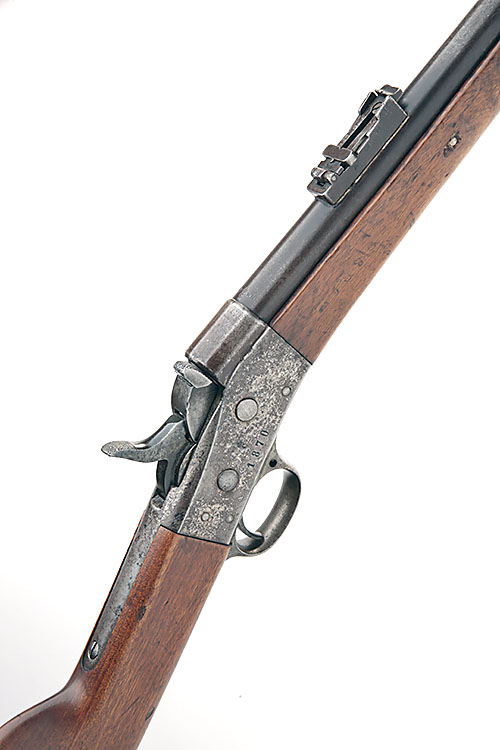 A 12.7mm x48R (SWEDISH) SINGLE-SHOT SPORTING-RIFLE MODEL REMINGTON ROLLING BLOCK SWEDISH CONTRACT, serial no. 3450, dated for 1870, with shortened 32in. sighted barrel, slab-sided rolling block action with central hammer, walnut butt-stock and cut-back splinter fore-end