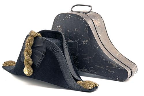 GIEVES LTD, LONDON & EDINBURGH A GOOD BRITISH NAVAL OFFICER'S BICORNE HAT AND STORAGE TIN,