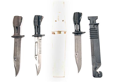 THREE BAYONETS FOR THE SA80 RIFLE, including an example in a parade scabbard, an example with the infantry scabbard and an unfinished example (no scabbard) (3)