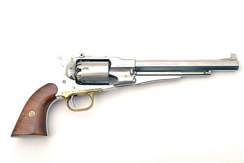 A REPRODUCTION .44 PERCUSSION REVOLVER, SINGLE ACTION, SIGNED FAP, serial no. 244545 with an 8 in. stainless steel octagonal barrel with adjustable rear sight and removable foresight blade , closed stainless steel frame and brass trigger guard, polished plain walnut grips