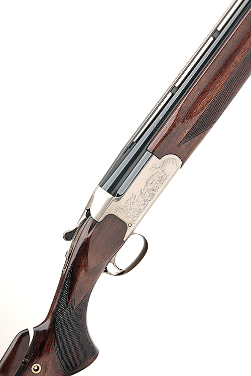 B.C. MIROKU 12-BORE '3000' SINGLE-TRIGGER OVER AND UNDER EJECTOR, serial no. 63160PW, 28in. nitro barrels with 7mm raised ventilated matt rib, 2 3/4in. chambers, multichoke (no spares), hold-open toplever, manual safety with integral barrel selector switch, engraved with game scenes, bright finish, 14 1/4in. pistolgrip stock with adjustable comb including 7/8 rubber recoil pad, weight 7lb. 2oz.