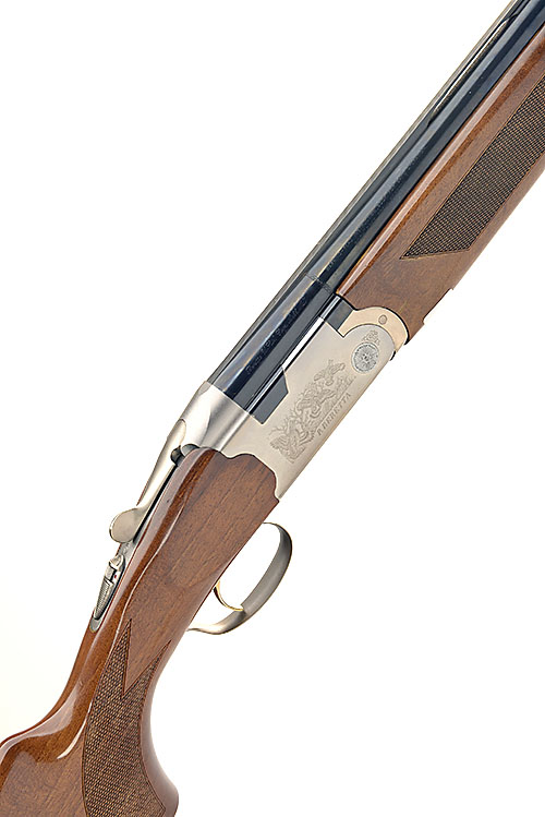P. BERETTA 12-BORE (3IN.) 'WHITEWING' SINGLE-TRIGGER OVER AND UNDER EJECTOR, serial no. N49733B, 28in. nitro barrels with no mid-rib and 6mm ventilated matt top-rib, 3in. chambers, multichokes (with spares), hold-open toplever, manual safety with integral barrel selector switch, gold-washed single trigger, engraved with vignettes of feather in flight, 14 1/4in. pistolgrip stock, weight 7lb., in its makers universal case