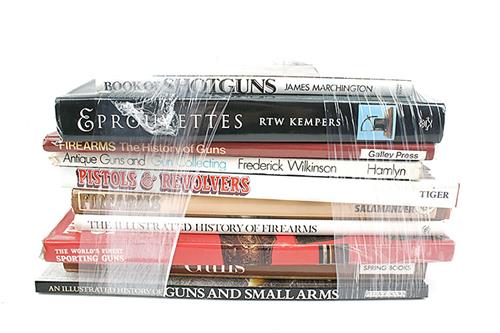 A COLLECTION OF 10 GUN RELATED BOOKS, comprising of 'AN ILLUSTRATED HISTORY OF GUNS AND SMALLARMS', 'THE WORLD'S GREAT GUNS', 'THE WORLD'S FINEST SPORTING GUNS', 'THE ILLUSTRATED HISTORY OF FIREARMS', 'FIREARMS', PISTOLS AND REVOLVERS', ANTIQUE GUNS AND GUN COLLECTING', 'FIREARMS AND THE HISTORY OF GUNS', 'EPROUVETTES', 'BOOK OF SHOTGUNS'