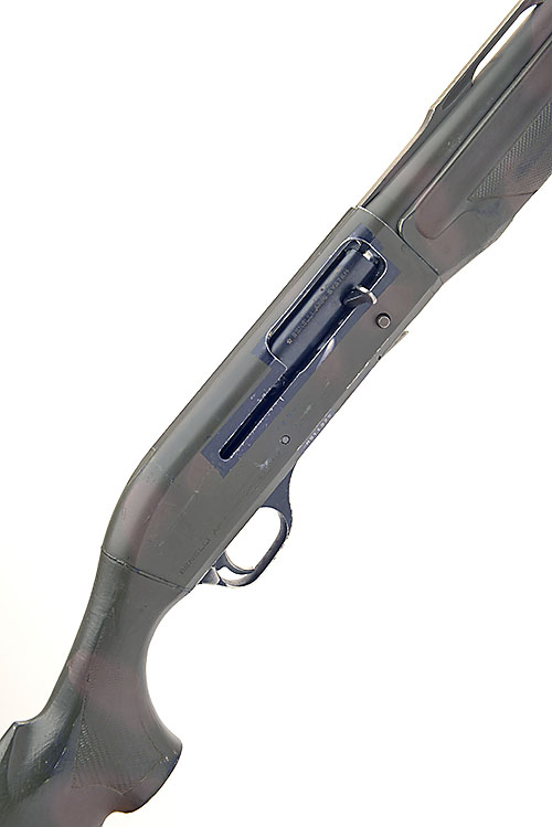 AN F.A.C. BENELLI (3IN.) 'M1 SUPER 90' SEMI-AUTO SHOTGUN, serial no. M511975, 25 3/4in. nitro barrel with 8mm raised ventilated matt rib, 3in. chamber, multichoke (no spares), manual push-button safety, 15in. synthetic pistolgrip stock including rubber recoil pad, the whole in camouflage effect paint