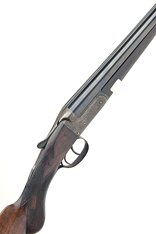 BIRMINGHAM .410 BOXLOCK NON-EJECTOR, serial no. 961, 30in. nitro reproved barrels, 2 1/2in. chambers, bored approx. 1/4 choke in both, treble-grip action, automatic safety with inlaid 'SAFE' detail, border and acanthus scroll engraving surrounding depictions of hound and fowl in the their naturalistic habitats, 14 1/2in. semi-pistolgrip stock including buttplate (pinned at head and with insert repair to wrist), Anson push-rod splinter fore-end, weight 4lb. 12oz.