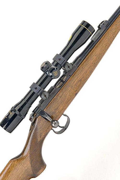 BRNO .22 L.R. 'MODEL 2' BOLT-MAGAZINE SPORTING RIFLE, serial no. 216143, 24 1/2in. nitro barrel, ramp-mounted blade fore-sight, rear-sight missing, fitted with a Nikko stirling 4x32 telescopic sight, manual safety, detachable magazine missing, 13 7/8in. pistolgrip stock, leather sling