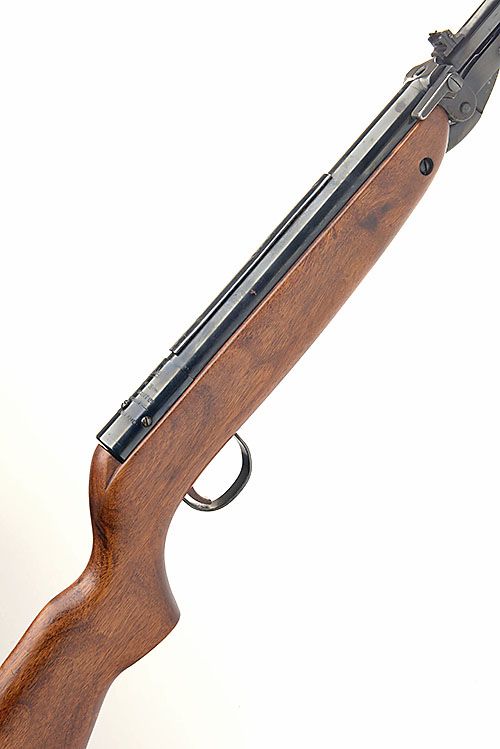 AN UNDERLEVER .22 AIR RIFLE, SIGNED WEBLEY & SCOTT, MODEL MK3, serial no. A882 with an 18in. blued round sighted barrel, tap loading blued receiver and underlever, blued trigger guard, polished walnut stock