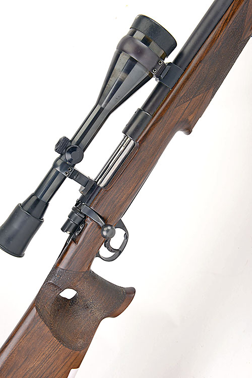 LIEGE 7mm REM BOLT-MAGAZINE SPORTING RIFLE, serial no. R86590, 25 1/2in. unsighted heavy nitro barrel, fitted with a K. Kahles Wien Helia-Super telescopic sighted with quickly release mounts, manual safety, hinged floorplate, bipod, 14 1/8in. well-figured thumbhole stock