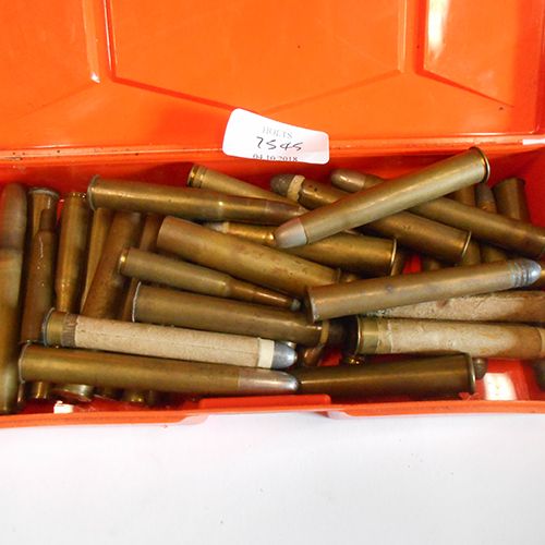THIRTY THREE COLLECTABLE BIG GAME CARTRIDGES AND FOUR OTHERS, comprising of big game cartridges some inert some live, 4 military rimless live cartridges: 5 kynoch .450 ne, 1 eley No2 ne, 1 .375 magnum, 3 .500 eley london ne, 1 .458 win w-w, .500/465 ne, 2 kynoch .475 ne eley london No2, 3 kynoch .500/450 n.e, 1 450/400 ne. 1 .500/460 ne, 1 7 mm M.Sch, 3 kynoch 7 x 57mm, 1 kynoch 7.9/8mm x 58, 2 kynoch .470 ne, 1 H&H .240, 1 eley .475, 1 eley .500, 1 eley london .450/400 ne, 1 kynoch .360 No2, 1 .577 nitro inert, 1 kynoch .476 ne, 1 kynoch .240 case, 1 .450 eley london. 3 eley .450 x 3 1/4in. box'r patent cartridges. .
