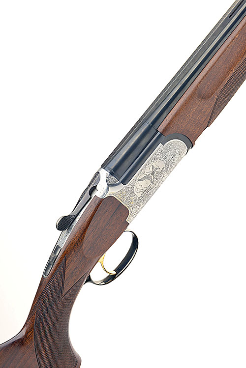 JOHN MACNAB 20-BORE (3IN.) 'LOWLANDER' SINGLE-TRIGGER OVER AND UNDER EJECTOR, serial no. 77384, 27 3/4in. nitro barrels with 7mm ventilated matt top-rib, 3in. chambers, bored approx. 1/2 and 3/4 choke, hold-open toplever, automatic safety with integral barrel selector switch, gold-washed single trigger, acanthus scroll engraving, 14in. pistolgrip stock including buttplate, weight 6lb. 2oz.