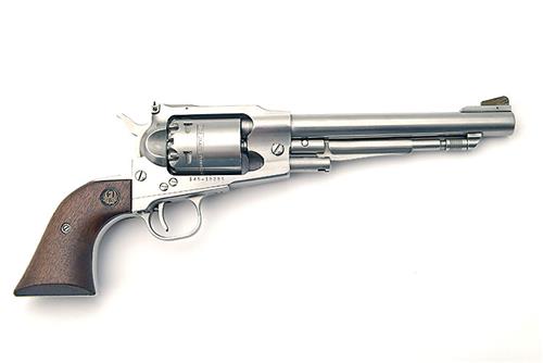 A REPRODUCTION .44 PERCUSSION REVOLVER, SINGLE ACTION, SIGNED 'RUGER OLD ARMY', serial no. 145-18285 with a 7 1/2 in. stainless steel octagonal barrel with competition adjustable sights, on a stainless steel frame, walnut grips with company logo, the whole appearing little used