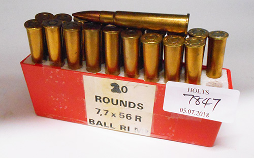 TWENTY COLLECTABLE 7.7 x 56R / .303 BRITISH CARTRIDGES, comprising of twenty identical flanged cartridges market 7.7 x 56R which is the same as .303 all loaded with fmj bullet.