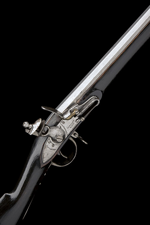 believed one of a number sold to Baring's Bank during the Chartist riots, with octagonal to round 43in. Birmingham proved barrel in the white, borderline engraved lock of English form signed 'SARGANT & SON' but with French style hammer and applied brass pan, marked 'WARRANTED' to the tail, walnut three-quarter stock with iron furniture except twin banded brass nose-cap, the whole resembling a French Charleville musket
