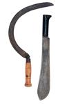 A BOLO MACHETE AND A HAND SICKLE, the first signed 'COLLINS & Co' and dated 1940, both missing sheaths (2)